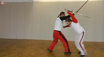 Bei Halbschwerttechniken wird typischerweise mit der Hand die Klinge gegriffen.