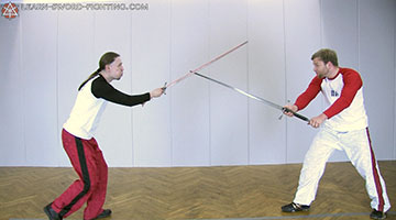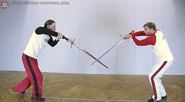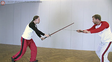Durch die Kombination der vier Grundhaue (Angriffe, offensiv) und der vier Standardversatzungen (Paraden, passiv) kannst du sämtliche Aspekte der Einzeltechniken koordinieren: Schritte, Handarbeit, Distanz, Timing.