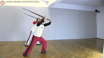 This video is about Zornhau (wrath-strike), which is a basic Oberhau, a strike made diagonally from high to low.