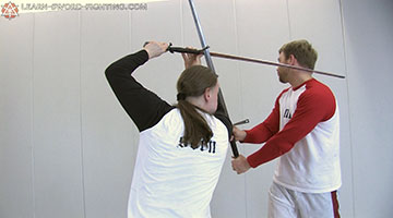 Einfache Abläufe sind Szenarien von aufeinanderfolgenden Angriffen und Zähler, die von zwei Fechtern zum gegenseitigen Lernen durchgespielt werden.