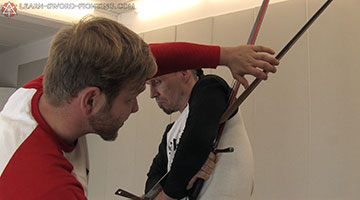Bei Halbschwerttechniken wird typischerweise mit der Hand die Klinge gegriffen.