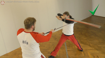 This video shows you how to counter with Twerhau from either side, striking with either long edge or short edge. This interpretation cleverly uses Kron for intercepting your foes weapon and launching your strike.