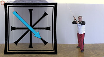 This video is about Zornhau (wrath-strike), which is a basic Oberhau, a strike made diagonally from high to low.